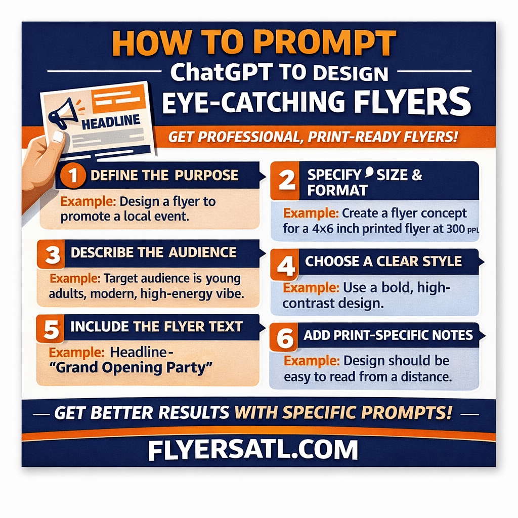 If you’ve ever asked ChatGPT to “make a flyer” and ended up with something generic, cluttered, or low-quality, this guide is for you. Below, you’ll learn exactly how to prompt ChatGPT to create flyers that look professional, print well, and actually get attention.